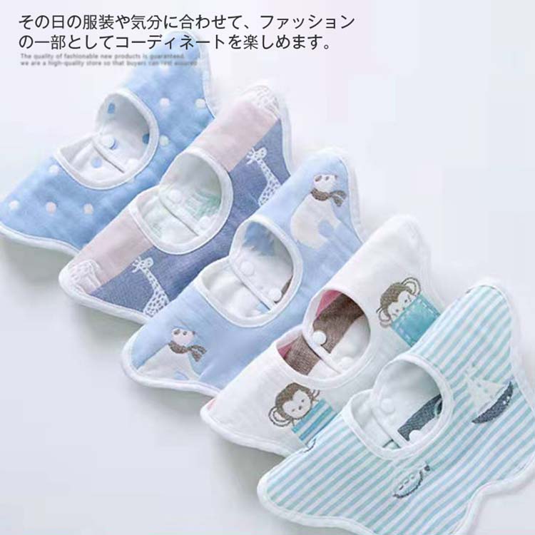ベビースタイ 5枚セット 360度スタイ 男の子 女の子 ユニセックス よだれかけ 前掛け ベビー スタイ 赤ちゃん 出産祝い お食事エプロン 6重ガーゼ 綿100% おしゃれ 入園準備