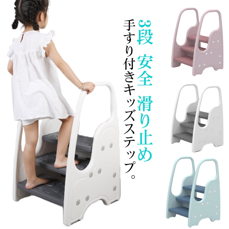 踏み台 子供 3段 手すり付き 軽量 おしゃれ はしご 足置き台 洗面所 台所 お手伝い トイレキッズ ベビー マタニティ ベビー用インテリア 収納用品 踏み台