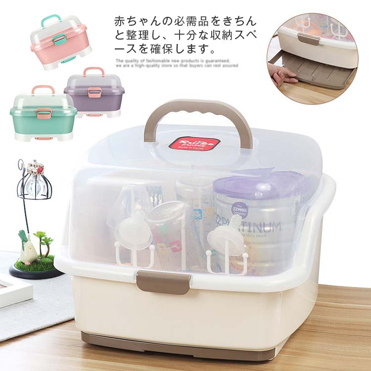 哺乳瓶ラック 乾燥ラック 収納ボックス 哺乳瓶収納 多機能 防塵 防カビ衛生用品 水切り 保管ケース 大容量 ハンドル付き 持ち運び便利 哺乳瓶ケース 収納ケース 哺乳瓶キャリー