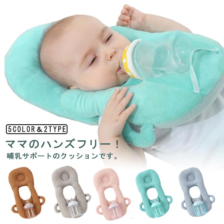 授乳クッション 枕 ピロー ハンズフリー 新生児 乳児 ベビーカー チャイルドシート 哺乳瓶ホルダー サポートクッション 出産祝い ギフト グレー ピンク ライトグリーン 育児グッズ 男女兼用 授乳ク