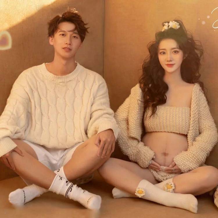 オーバー セーター 妊娠 記念撮影 ペア ママ 男女 チューブトップ フォト 撮影服 お揃い 撮影 衣装 写真服 上下セット おしゃれ カップル 可愛い 3点セット マタニティ 妊婦 妊婦衣類