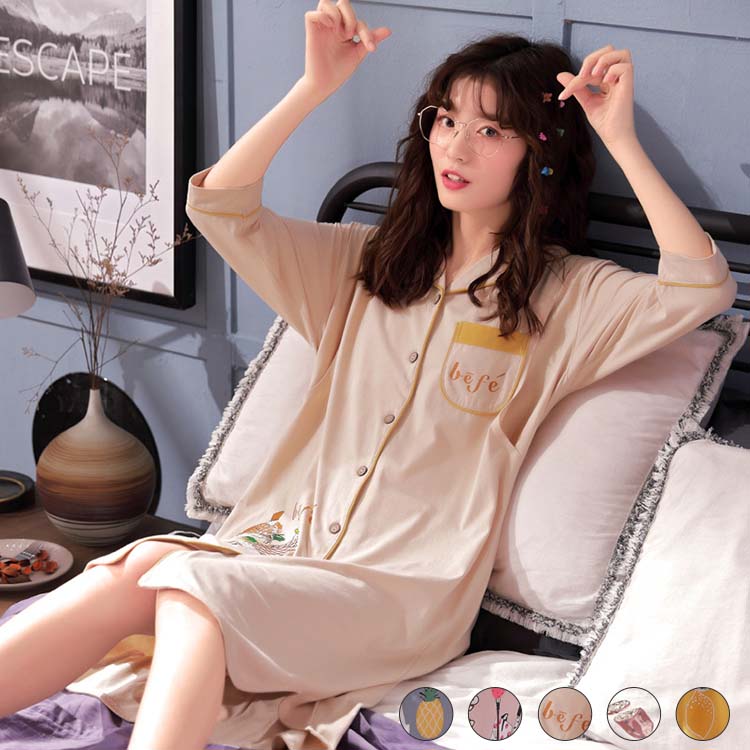 ネグリジェ マタニティパジャマ 夏 半袖 入院 ワンピースパジャマ ママ マタニティ パジャマ ルームウェア 大きいサイズ 前開き 妊婦服 産前産後 ルームウェア