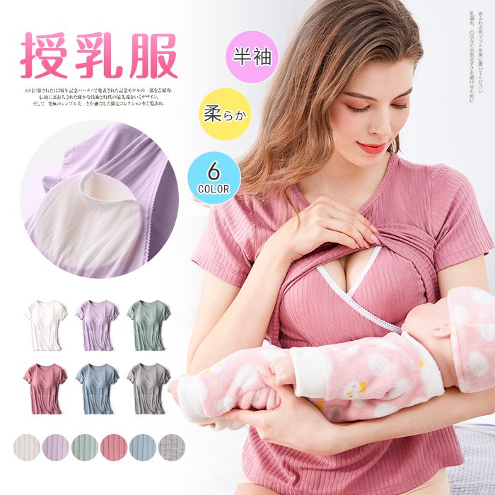 授乳服 半袖 授乳シャツ マタニティー トップス 妊婦 妊娠 授乳 産前 産後 ママ シンプル 夏