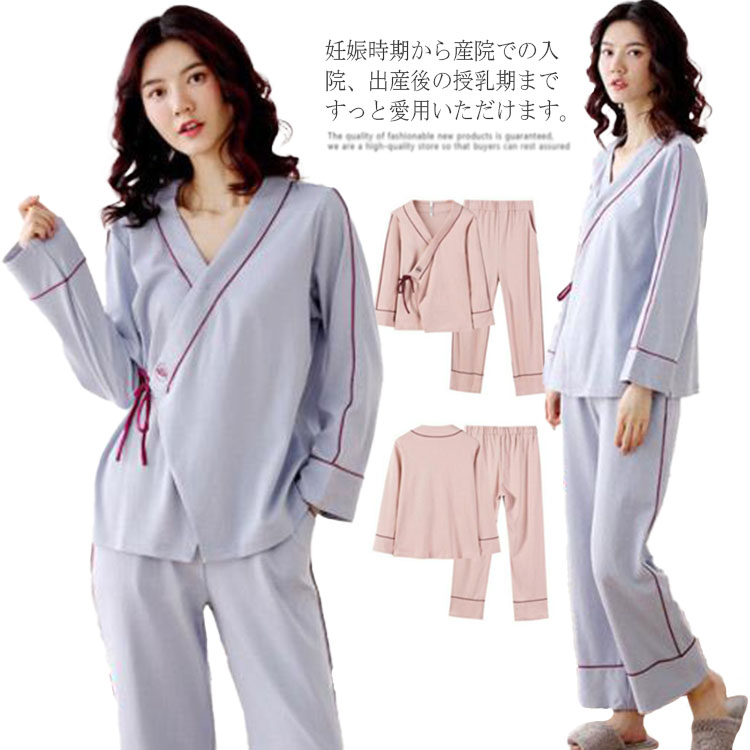 授乳服 マタニティパジャマ 綿100% 2点セット 授乳口付き 前開き マタニティ パジャマ 春 夏 秋 産前 産後 ルームウェア ウエスト調整ゴム付 ナイティウェア
