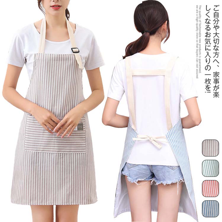 エプロン レディース 保育士 カフェエプロン 飲食店 店員 首掛け式 おしゃれ シンプル 割烹着 カフェエプロン ストライプ ワンピース 大きいサイズ かわいい 母の日