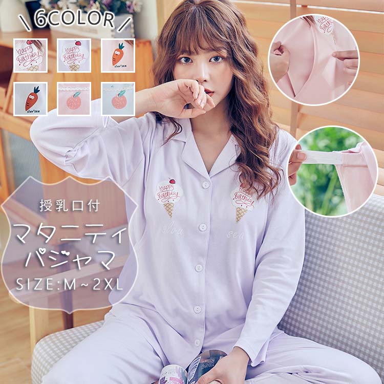マタニティパジャマ 前開き 長袖 冬 授乳服 上下セット マタニティ パジャマ 綿100% 授乳口付き 妊娠 ルームウェア 授乳口 ママ 可愛い マタニティウェア 産前産後 ナイティウェア 秋 冬