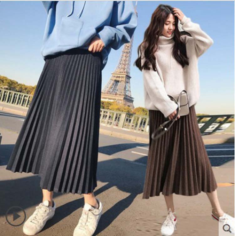 マタニティ スカート 秋冬 オフィス プリーツスカート ロング ミモレ丈 黒 2colors Aライン マタニティスカート フォーマル お腹支える ゆったり 大きいサイズ 無地 産前