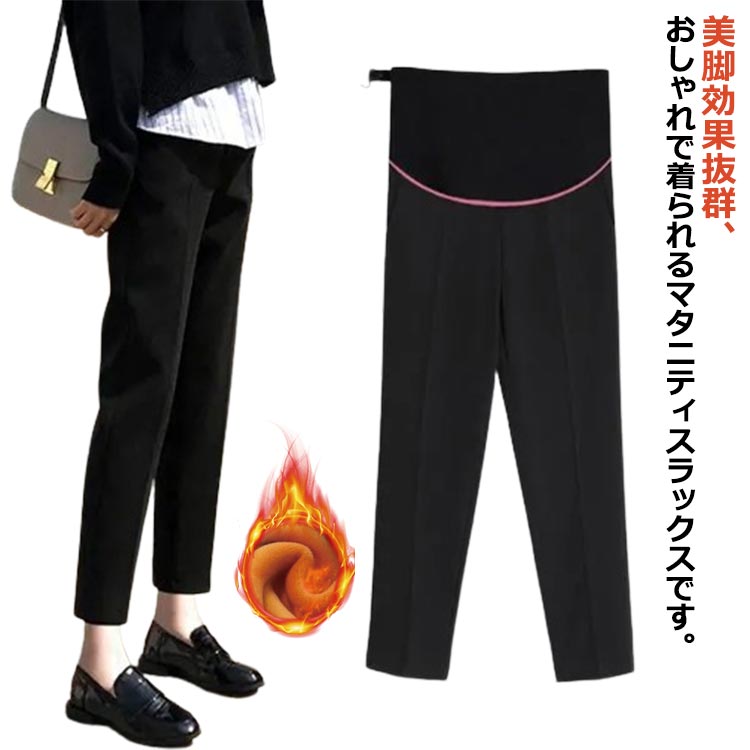 マタニティ レディース オフィス ハイウェスト アジャスター 妊婦服 スラックス 妊婦服 マタニティパンツ 裏起毛 付き フォーマル パンツ
