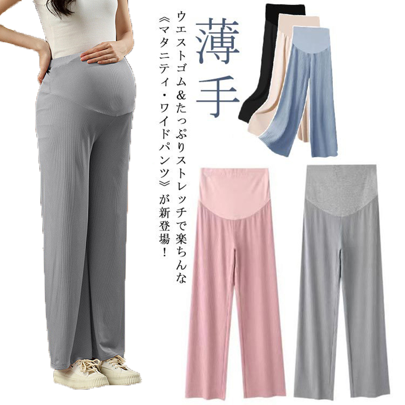 マタニティ パンツ リブ 春 夏用 七分丈 ロング丈 ワイド ゆったり 妊婦キッズ ベビー マタニティ マタニティ ママ用品 マタニティウェア 授乳服 パンツ