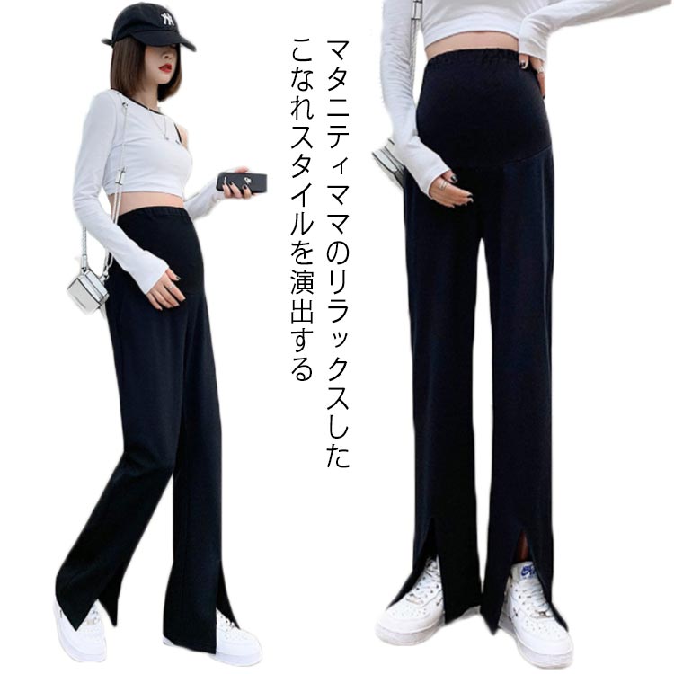 ボトムス 妊婦服 レギンス フレアパンツ スリット 産前 アジャスター付き パンツ ストレート 長ズボン 産後 ストレッチ ワイド ルームウェア 春 黒 お腹を包むウエスト 夏 秋 マタニティ
