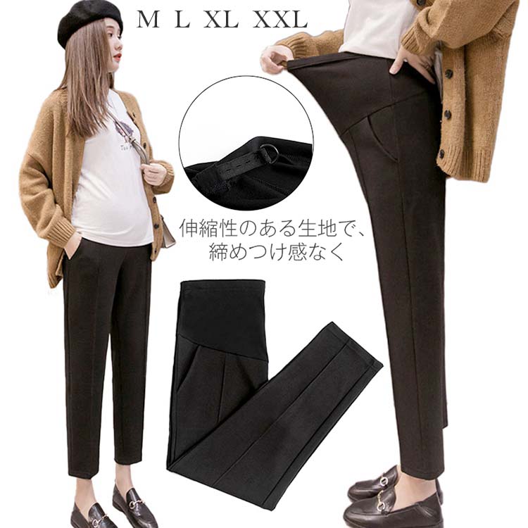マタニティ パンツ レディース 春 秋 冬 九分丈 薄手 テーパードパンツ 細身 レディース マタニティウェア 大きいサイズ ストレッチ スーツズボン 妊婦 フォーマル 無地 黒