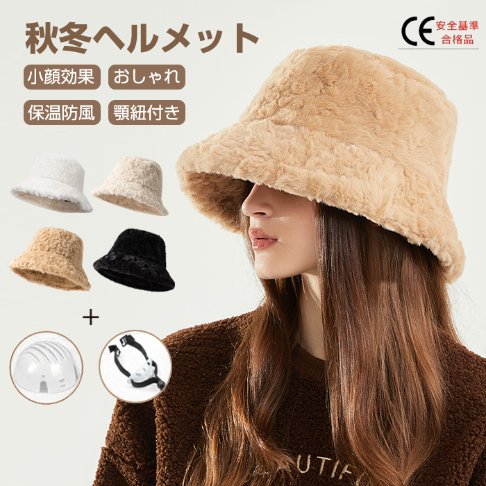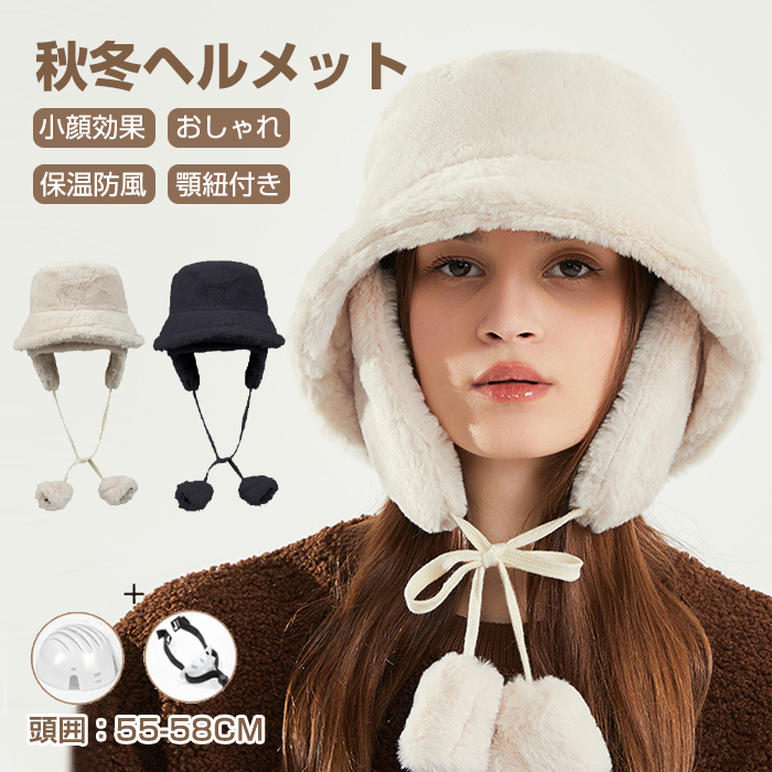 帽子型ヘルメット レディース ふわふわ 帽子 防寒 可愛い 秋 冬スポーツ アウトドア 自転車 サイクリング ヘルメット