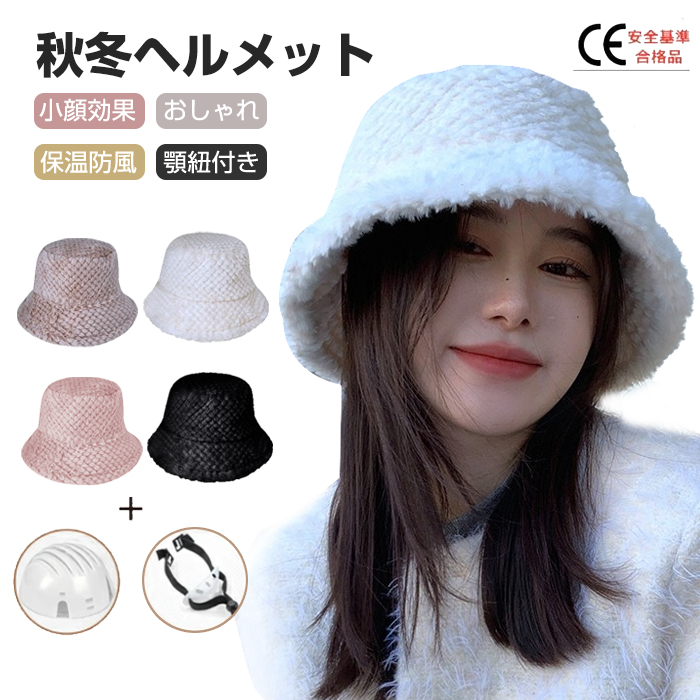 帽子型ヘルメット レディース ふわふわ 帽子 防寒 可愛い 秋 冬 おしゃれ ふわふわ 帽子 あったか 厚手 カジュアル 通気性抜群 防災ヘルメット レディース カット あご紐 落下防止