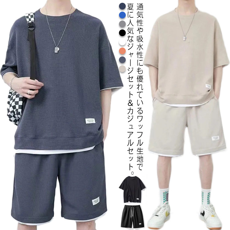 上下セット ワッフル メンズ 夏 セットアップ 半袖 トレーナー スウェットパンツ ウエストスポーツ アウトドア スポーツウェア アクセサリー ジャージ メンズジャージ セットアップ