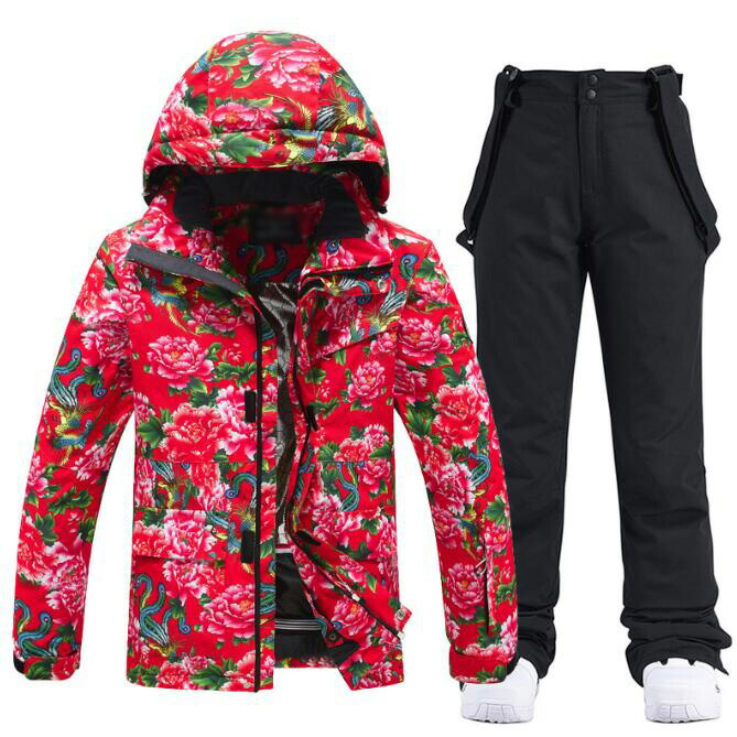 スノボー 防水 レインウェア ボード 女性用スキーウェア 学生 大人 レディーススキーウェア メンズ スノーウェア カップル セットアップ スノボ ウェア 2点セット サスペンダー