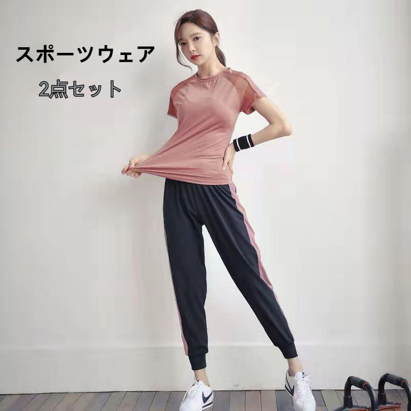 レディース スポーツウェア Tシャツ ズボン 運動服 ヨガウェア 上下セット ジム ダイエット 体操服 速乾 トレーニングウェア ランニング ウェア フィットネス