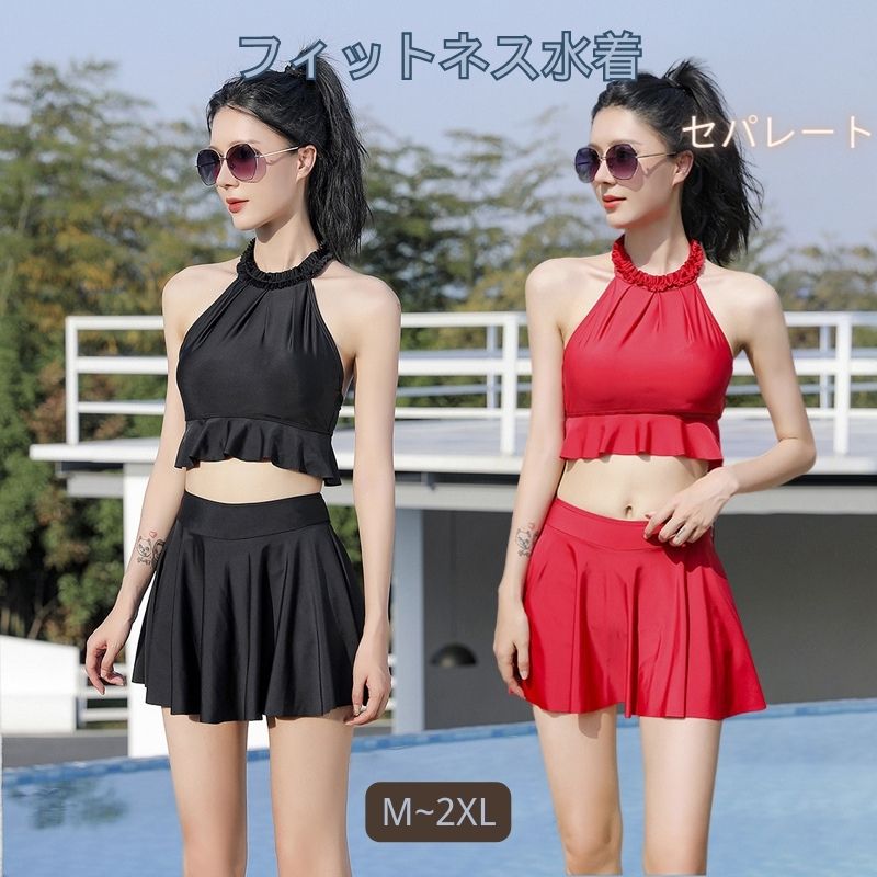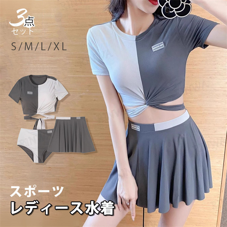 フィットネス水着 スカート 2点セット 半袖 レディース 水着 体型カバー フィットネス 水着スポーツ アウトドア 水泳 フィットネス水着