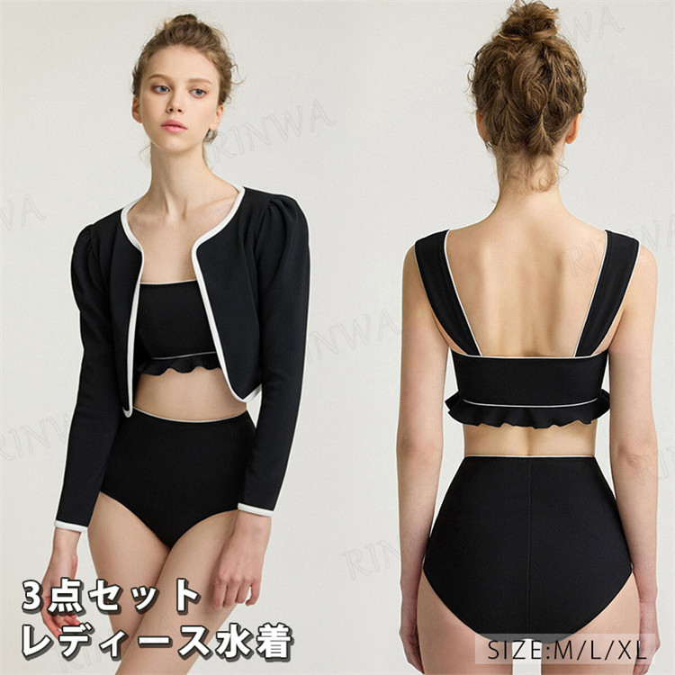スポーツウェア 3点セット スレンダーライン ビーチウェア タイト スタイリッシュ 海水浴 水泳 水中ウォーキング スイムウェア 着痩せ 速乾 紫外線カット uvカット フィットネス水着