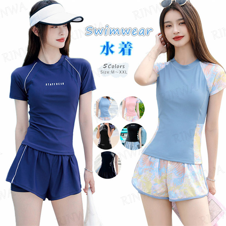 フィットネス 水着 レディース スポーツ 水着 女性 水着 女の子 160 セパレート 半袖 2点 上下セット 水着 レディース 体型カバー M-2XL