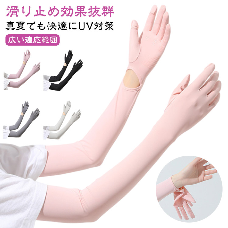 アームカバー ロング UVカット手袋 UVカット 腕カバー 紫外線対策 UPF50+ 指切り スマホ対応 冷感 吸汗速乾 暑さ対策 指あり 滑り止め 涼しい クール レディース 熱中症対策