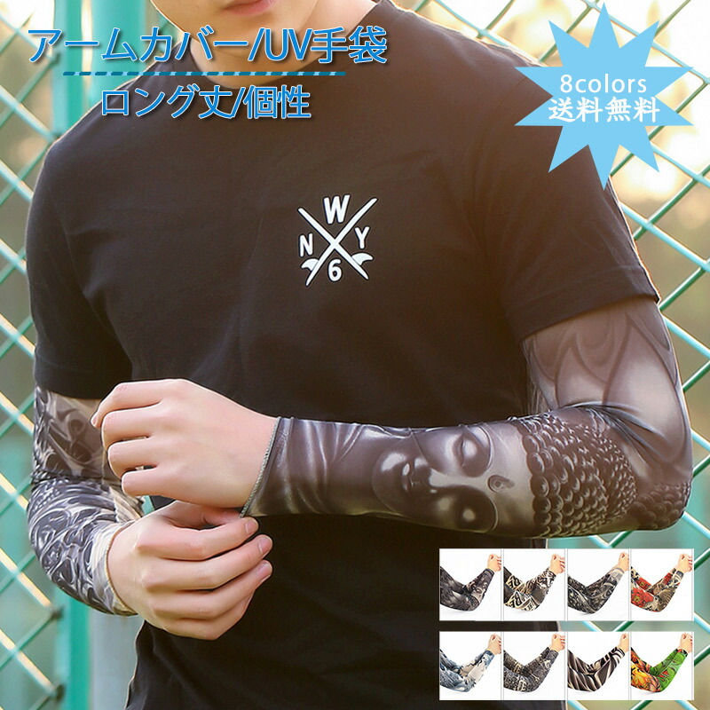 アームカバー メンズ UV手袋 ロング丈 個性 入れ墨 刺青 紫外線対策 日焼け止め スポーツ 薄手 自転車 夏用 きれいめ おしゃれ