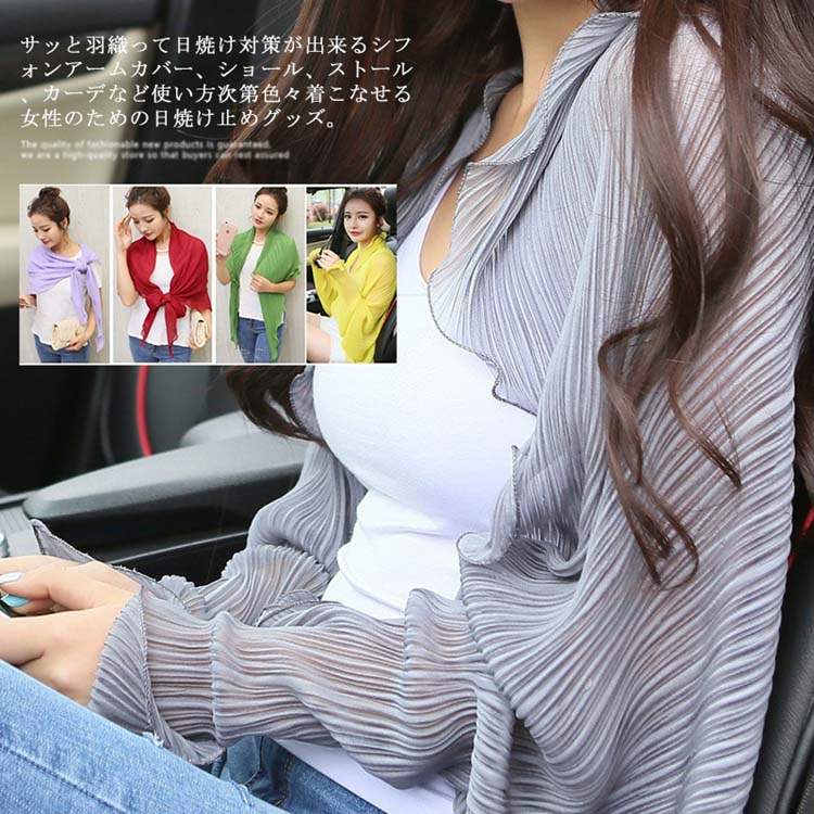 アームカバー レディース カット 羽織り 冷房対策 肩掛け シフォンカーディガン 15 プリーツ ショール 日焼け止め 冷房対策 ゴルフ 紫外線対策 2枚入 可愛い