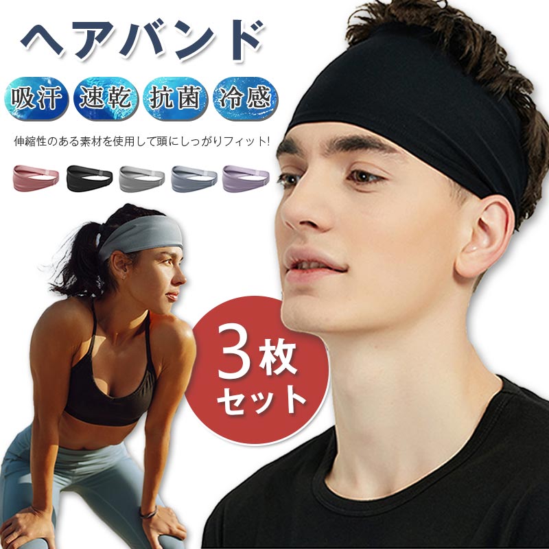 ヘアバンド 男女兼用 3本セット 冷感 ヘッドバンド スポーツ ジム 筋トレ トレーニング 吸汗速乾 汗止め 洗顔