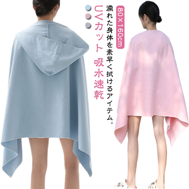 ポンチョ タオル レディース 速乾 UVカット フード付き ポンチョタオル 暑さ対策 UV対策 スポーツ ビーチ 無地 夏用 プール 海 アウトドア 海水浴