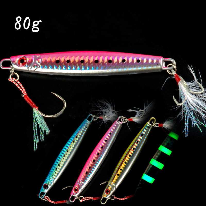 フィッシング ルアー メタルジグ 鉄ジグ アジング 80g フック付属 遠投性 ジグ 釣り用品 釣り具 夜光効果 飛距離