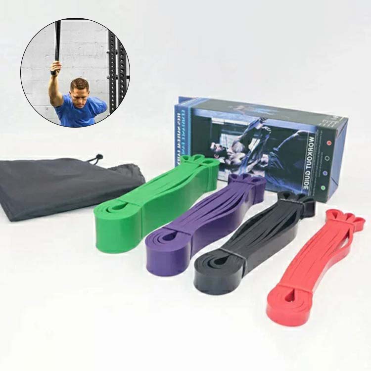 収納ポーチ付き ストレッチ 天然ラテックス製 エクササイズバンド 筋トレチューブ 懸垂アシスト 懸垂補助 トレーニングバンド 強度別4本セット フィットネスチューブ