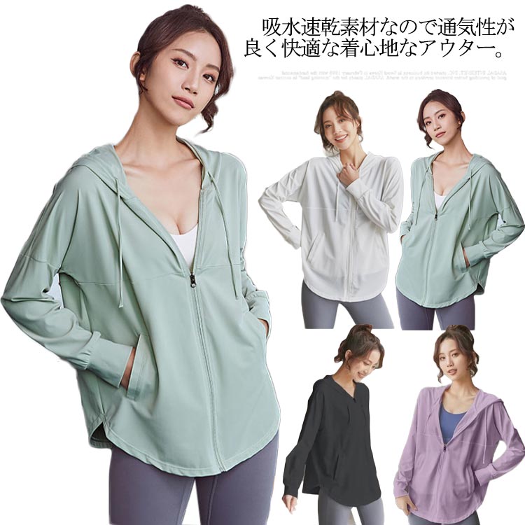 スポーツウェア アウター ヨガウェア レディース 長袖 パーカー 吸汗速乾 通気性 UVカット フード付き トレーニング フィットネス ヨガ ピラティス ジム トップス おしゃれ 薄手 ゆったり カジ