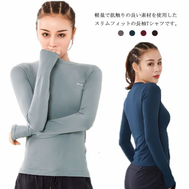 スポーツウェア ヨガウェア おしゃれ レディース ランニングウェア Tシャツ 長袖 デザイン Uネック 吸汗 速乾 スポーツ 指穴付き 20代 30代 運動 かわいい おしゃれ 女性用