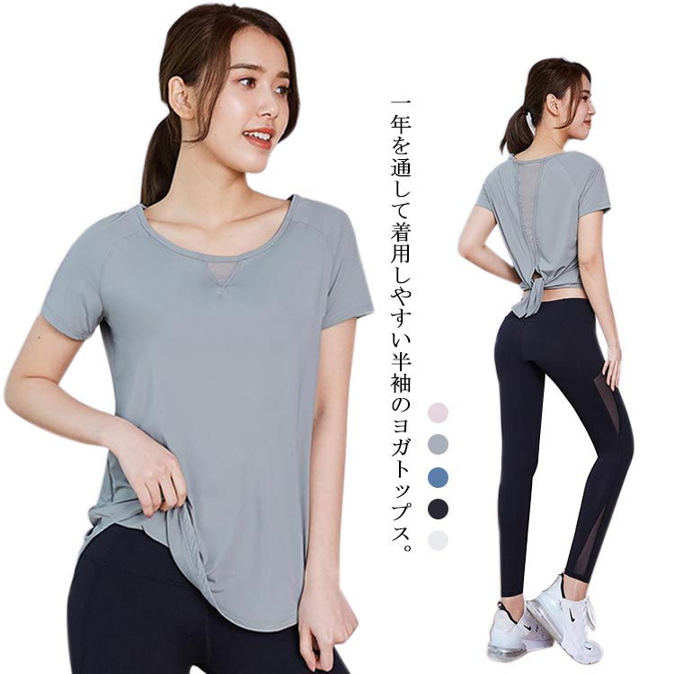 レディース ヨガウェア トップス 半袖 Tシャツ フィットネスウェア ダイエット腹筋 ピラティス スポーツ 快適 無地 かわいい おしゃれ きれいめ バックメッシュ ホットヨガ フィットネス スリット