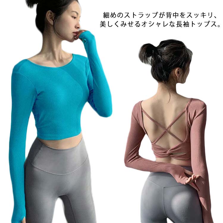 スポーツウェア 長袖 トップス ショート丈 パッド付き ヨガ フィットネススポーツ アウトドア ヨガ ピラティス ウェア トップス