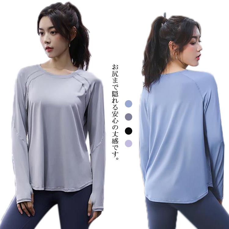 ヨガウェア トップス 体型カバー レディース スポーツウェア おしゃれ ゆったり ロング丈 ランニング トレーニング ジム フィットネス ウェア 吸汗速乾 指穴つき 初心者 運動不足解消 おうち 時間
