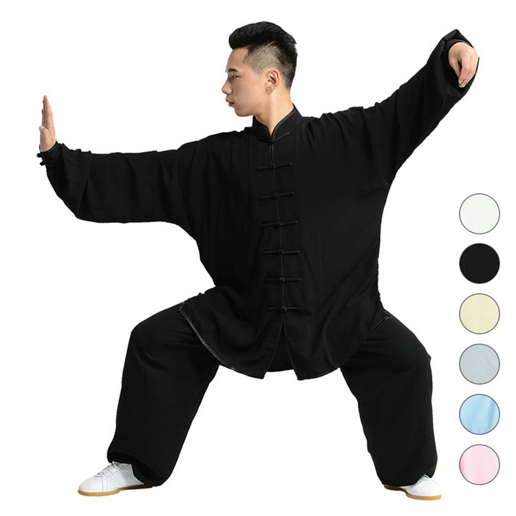 チャイナ風運動スポーツ衣装 男女兼用太極拳専用服 コットン ゆったり大きめ中華風カンフー気功衣装武術表演服 長袖 中華舞台服 太極拳ウエア 漢服 春夏 華流コスプレ衣装