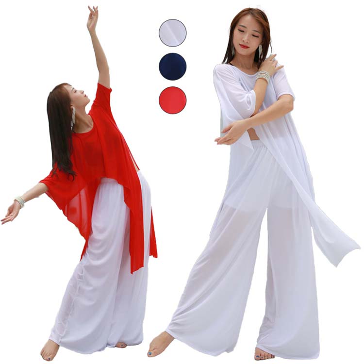 古典ダンス バレエ ロングガウチョパンツ 単品 セット選べる 衣装 白 ベリーダンス レディース レッスンウェア ロング シースルー ナチュラル ダンスウェア 練習着 ロングブラウス