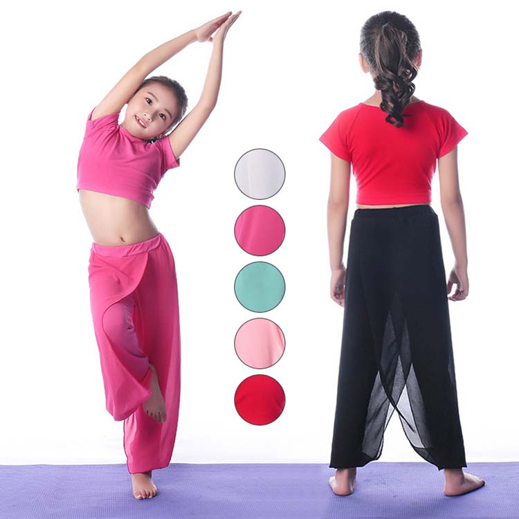 セットアップ キッズ 白 120 130 半袖 140 ヨガウェア モーダルTシャツ+ロングサルエルパンツ 古典ダンス チョウチンパンツ グリーン 黒 ピンク ヨガ レッスンウェア 女の子