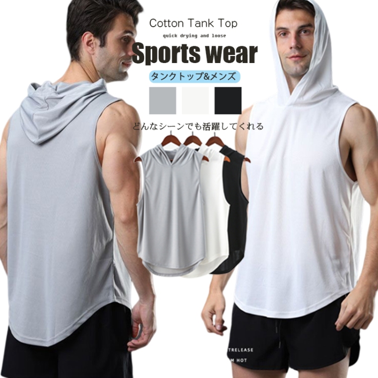 フード付き Tシャツ 袖なし トレーニングウェア 軽量 速乾 吸汗 ランニング 運動 スポーツウェア ランニングウェア 部