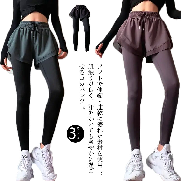 スポーツレギンス 一体型 ショートパンツ付き レディース ヨガウェアスポーツ アウトドア ヨガ ピラティス ウェア パンツ
