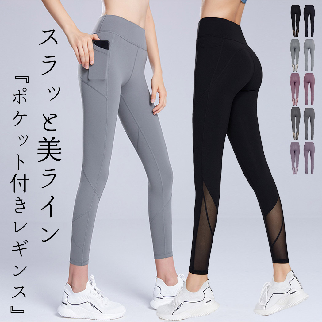 ヨガレギンス ヨガウェア おしゃれ ヨガパンツ ロング丈 スポーツウェア レディース ポケット付き フィットネス トレーニングウェア スパッツ ストレッチ ハイウエスト ヒップアップ スリム