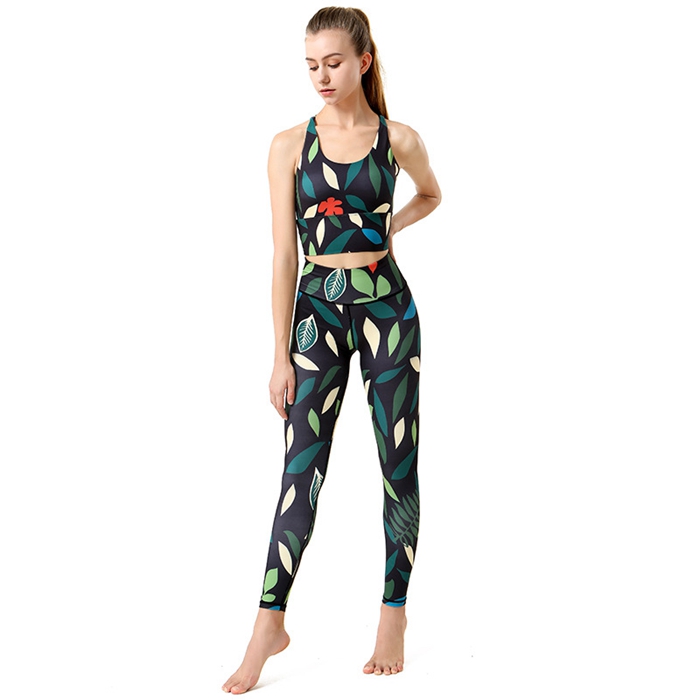 ヨガセット レディース 上下セット ヨガウェア スポーツブラ レギンス ヨガパンツ ボタニカル柄 花柄 総柄 おしゃれ スポーツウェア