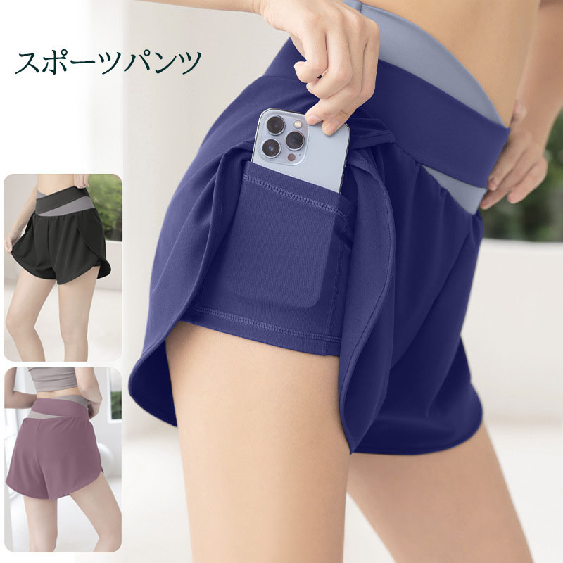 ショートパンツ レディース 短パン 重ね着風 スウェットパンツ ハーフ ワイドパンツ ゆったり ウエストゴム ルームウェア ヨガウェア ランニング スポーツ トレーニング フィットネス ジムウエア 吸
