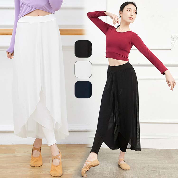 レッスンウェア ヨガウェア 古典ダンス衣装 舞台ステージダンス練習着 バレエパンツ バレエ スカート風パンツ 普段着 ふんわり ダンス衣装 シフォン不規則フレアパンツ