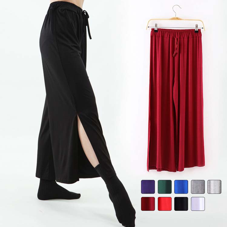 練習着 レディースヨガパンツ モダールストレッチバレエ スリット入パンツ ワイドパンツ ボトムス ダンスパンツ 社交ダンス衣装 ゆったり古典ダンス衣装 ラテンダンス衣装