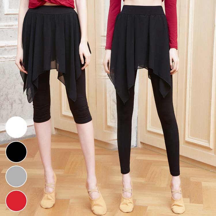 グレー 平日もOK フレアスカート風パンツ ダンスパンツ 白 ボトムス 赤 ストレッチ素材 黒 レディース練習レッスン着 ラテン古典バレエダンスウエア ダンス衣装 レギンスパンツ