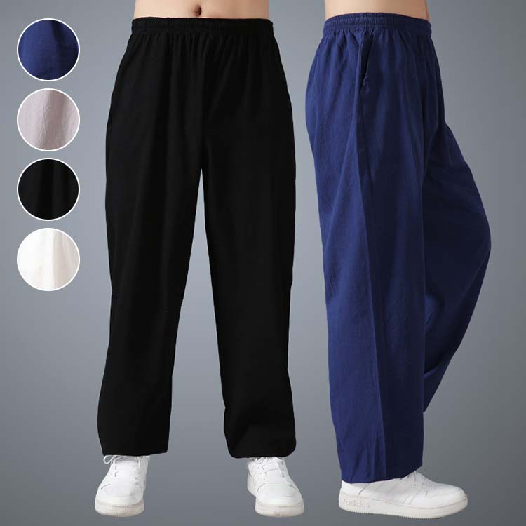 中華舞台演出服 棉麻パンツ リネンパンツ ゆったり気功武術練習ウエア 太極拳カンフーパンツ 通気性良い 太極拳パンツ チャイナ風運動パンツ 春夏 チョウチンパンツ