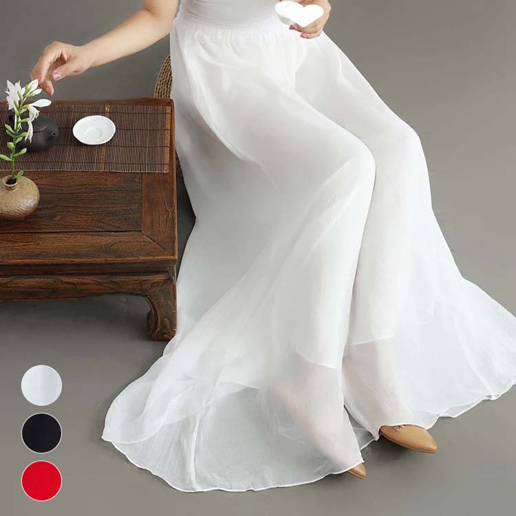 森ガールナチュラルダンスパンツ フレア シフォン ヨガパンツ カジュアルスカート風パンツ 春夏レディースワイドパンツ 練習レッスン着 ゆったりガウチョパンツ