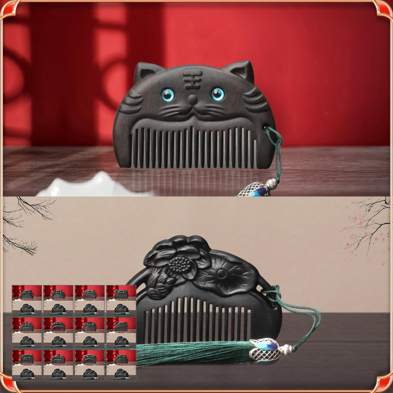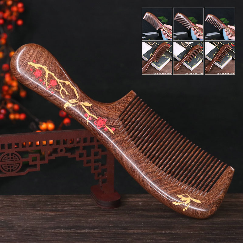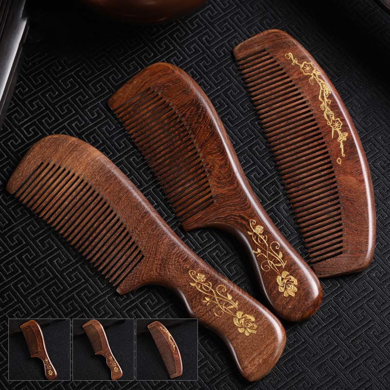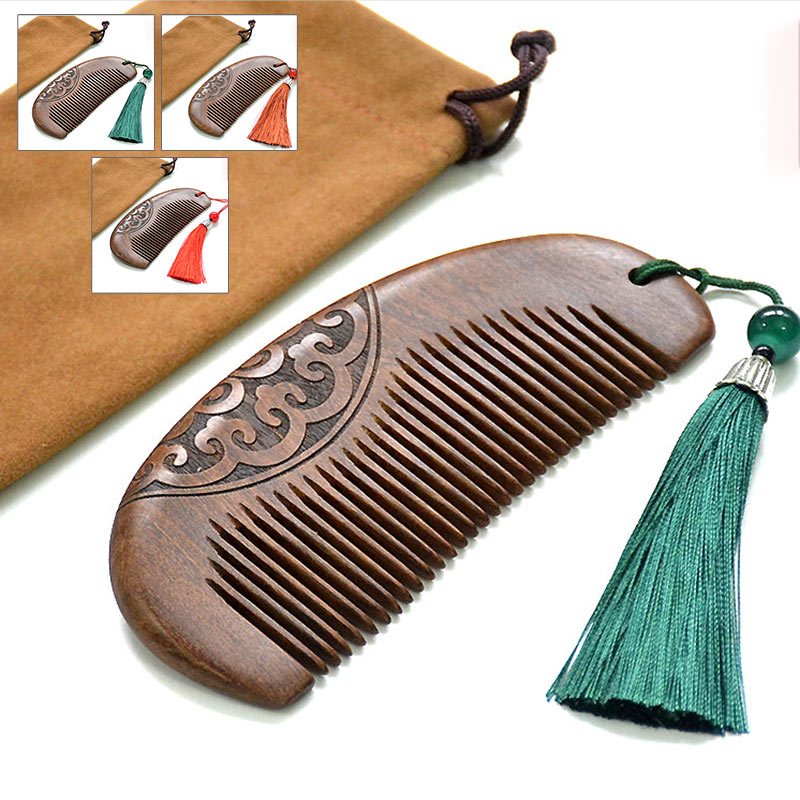 天然黒金檀木 母の日 誕生日 縁起 高品質 耐久性 コンパクト 携帯用美容 コスメ 香水 ヘアケア スタイリング ブラシ くし