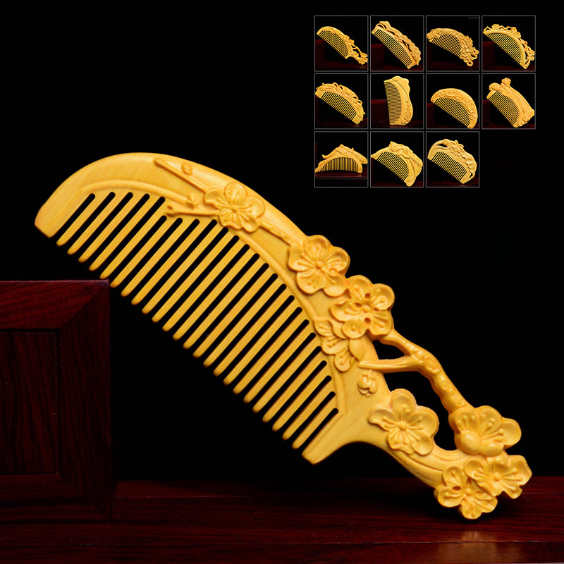 天然黄楊木 母の日 誕生日 縁起 高品質 耐久性 コンパクト 携帯用美容 コスメ 香水 ヘアケア スタイリング ブラシ くし